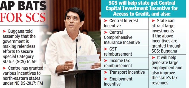Buggana told the assembly that the state government has been making continuous and determined efforts with the Centre to secure Special Category Status (SCS). He said chief minister YS Jagan Mohan Reddy had raised the issue at Niti Ayog meeting chaired by the Prime Minister and emphasised the impediments caused to AP due to the non-granting of SCS. He said the state government has made forceful argument before the XV finance commission and requested the commission to recommend the grant of SCS to AP to the Centre. He said they have also passed a resolution in the assembly and raised the issue with several Union ministers.