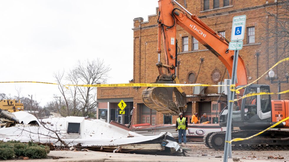 “The Illinois Emergency Management Agency is working closely with our local and county public safety partners and Emergency Managers to assess the widespread damages across the state, including here at the Apollo Theatre in Belvidere in Boone County, and at Robinson in Crawford County,” IEMA Director Alicia Tate-Nadeau said in a statement. “We continue to [assess] other damages in many counties across Illinois.”
