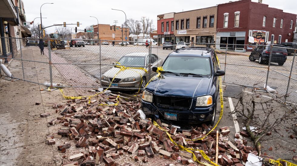 The theater, built in the early 1920s, saw the most damage on State Street. Other buildings, like a dance studio two doors down, lost some of its brick facade. A tarot reader’s door was also hit, and a restaurant lost some shingles.