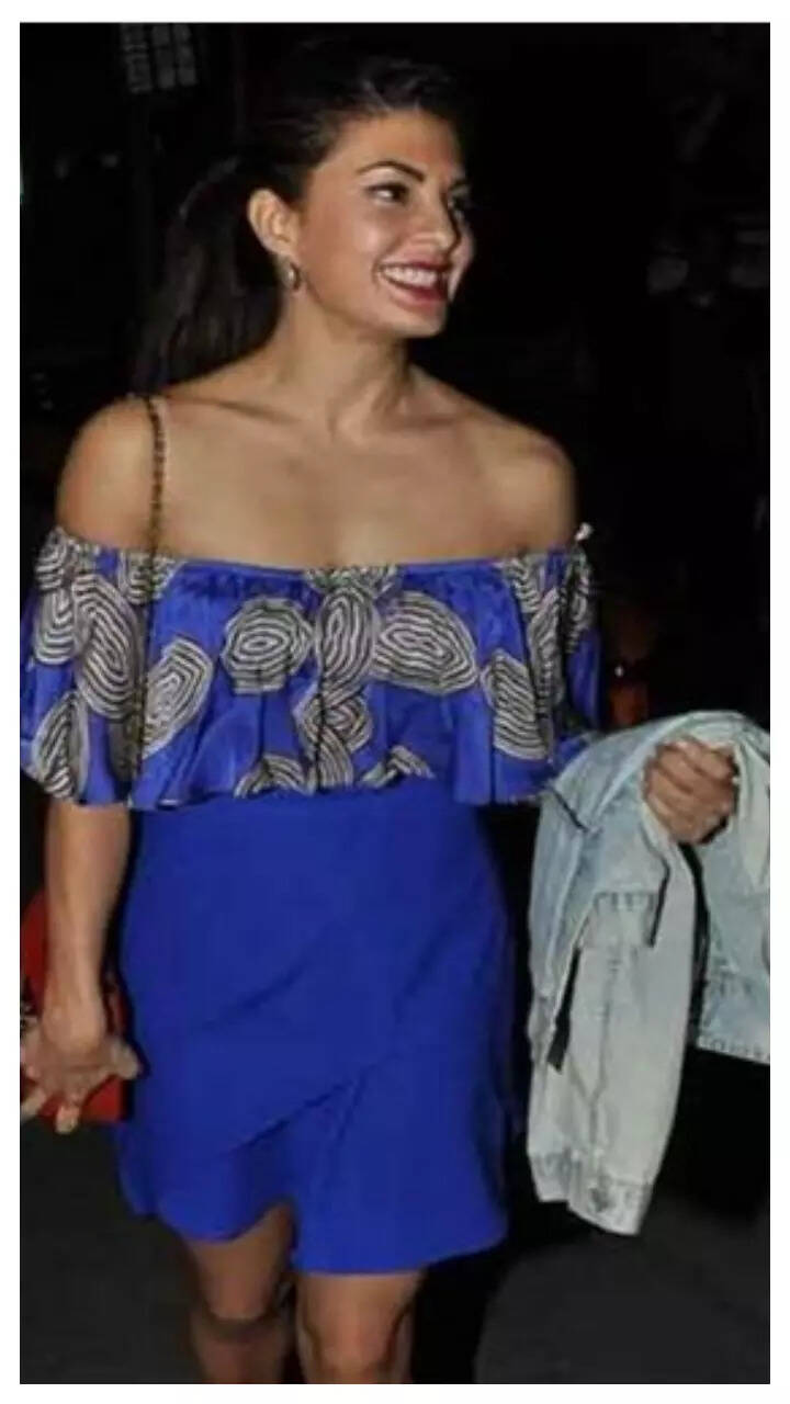 Jacqueline looked flawless in a blue crop top and blue skirt