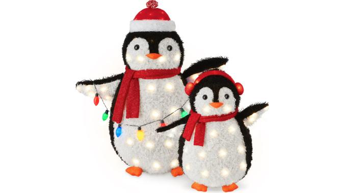 Walmart shoppers receive $100 off when they purchase this playful lighted penguin family set online. Available in red or blue, these outdoor penguins stand at three feet tall and shine bright with 150 pre-strung LED lights. A storage bag is included to keep the duo dust-free for use next Christmas.