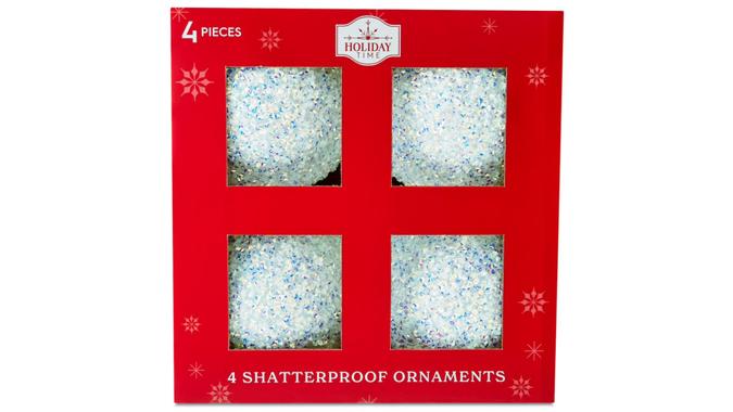 3. Holiday Time White Foil Glitter Ornaments (4-Count)