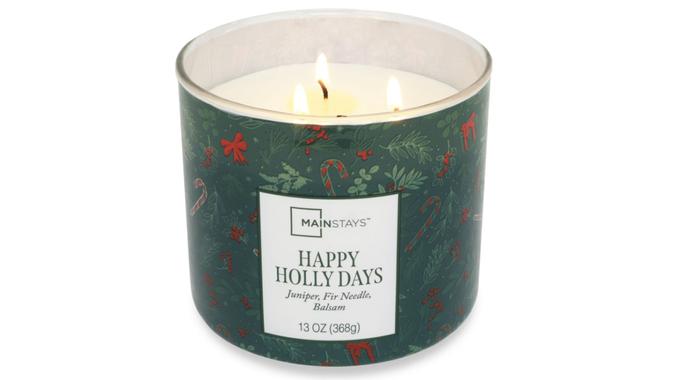 2. Mainstays 3-Wick Happy Holly Days Scented Candle