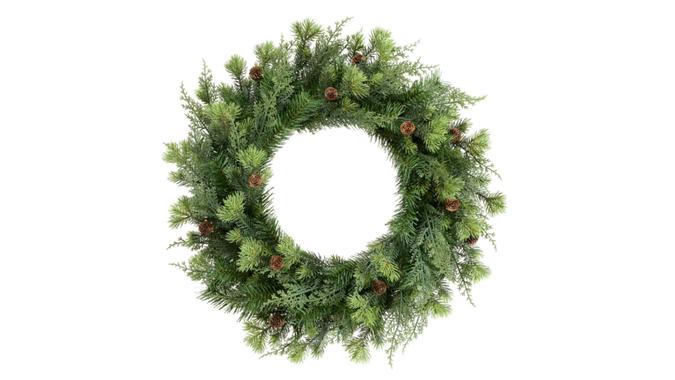 Nearly 100 Walmart shoppers have been purchasing the Sonoma cypress evergreen wreath during the holiday season. This understated wreath measures 24 inches, and is designed with 293 branch tips and small pinecones for a full appearance.