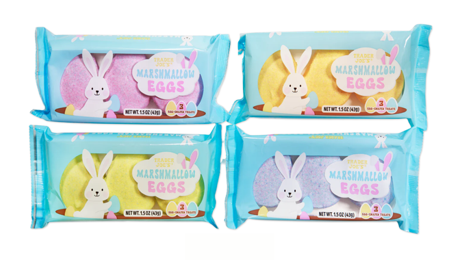 Egg-shaped marshmallow candies made without gelatin or corn syrup. As an Easter seasonal product, they are likely to disappear right after the holiday.
