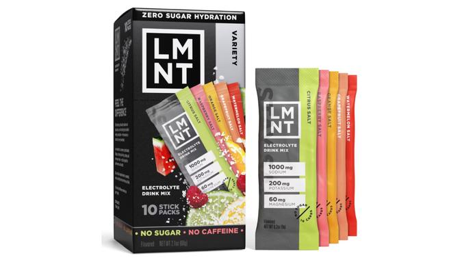 Get in your electrolytes by bringing along a variety pack of LMNT electrolyte drink mixes. Ten individual stick packs are inside every box, with flavors that include citrus, raspberry, orange, grapefruit and watermelon salt.