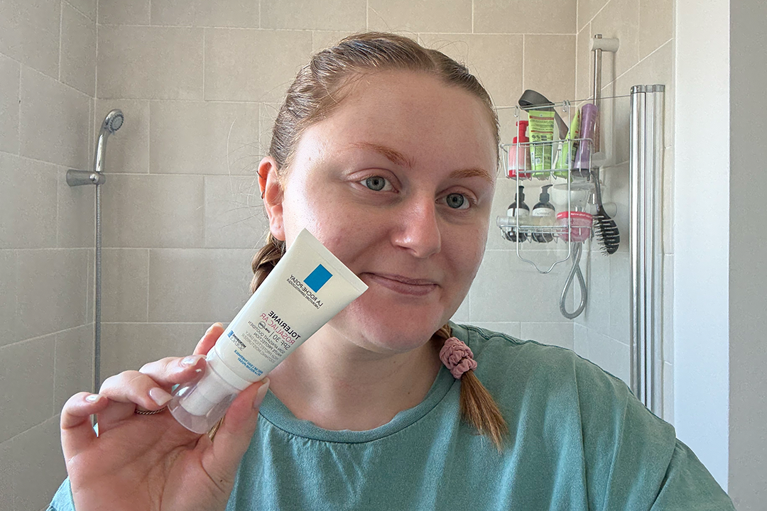 You won’t spot the anti-redness pigments upon dispensing this cream, but rest assured they’re there. I’ll admit, I didn’t initially think they’d had much of an effect on my skin, but after comparing testing photos with the other SPF moisturisers in this guide, it became clear the formula had subtly blurred the more purple-y tones from my rosacea.