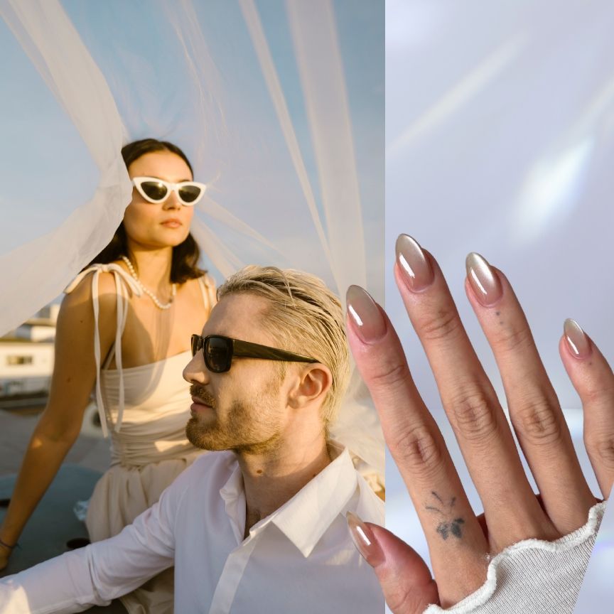 These molten tips scream "main character." And whether your wedding band is gold or you're mixing metals, this gilded mani will compliment your new hardware. Nail artist Juan Alvear, who has adorned the hands of Chappell Roan and Anya Taylor-Joy, says that cuticle oil is key when your hands are dripping in gold: "Use it on the wedding day to make sure the cuticles look hydrated and not dry—especially important when you know there will be hand or wedding ring photos." If you're looking to riff on this look at home, reach for a chrome-effect polish.