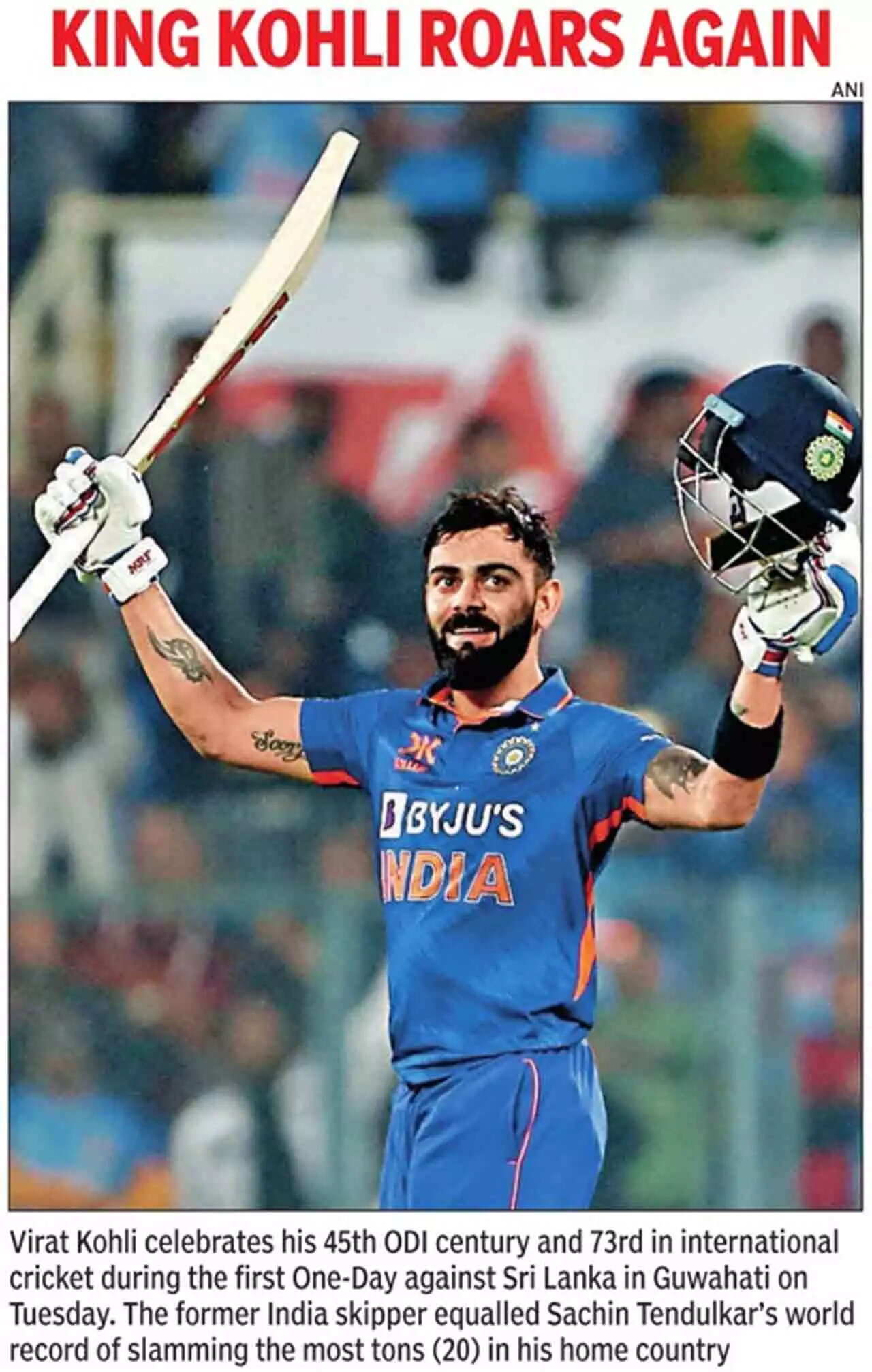 GUWAHATI: Coming back into the team refreshed following a break after the ODI series against Bangladesh, 'King Kohli' has started the New Year from where he left off. That normal sight of jubilation, punching his fist and jumping in the air, was back as Kohli completed his 45th century in ODIs, just four short of Sachin Tendulkar's record 49.