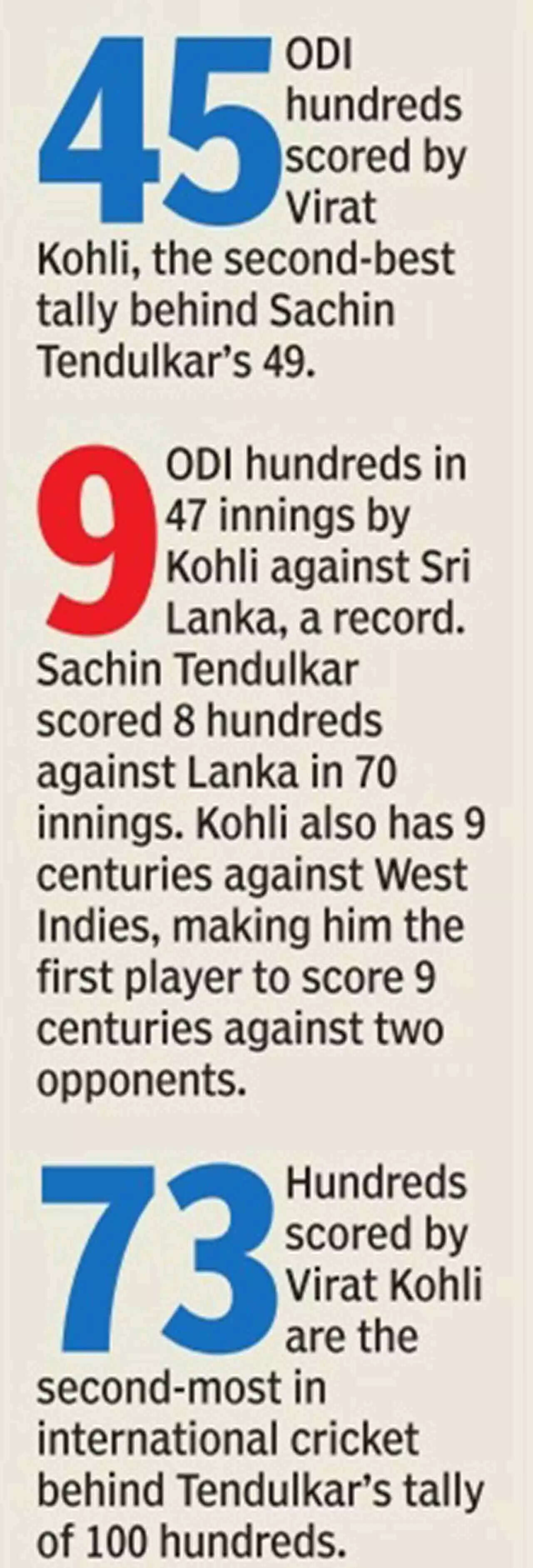 The path to the century wasn't smooth as he got two lives on 52 and 81, but he made the visitors pay dearly for those misses as India's road to the 50-over World Cup began on a thumping note with a comprehensive 67-run win over Sri Lanka. Kohli's second consecutive ODI ton helped India post a massive 373/7.