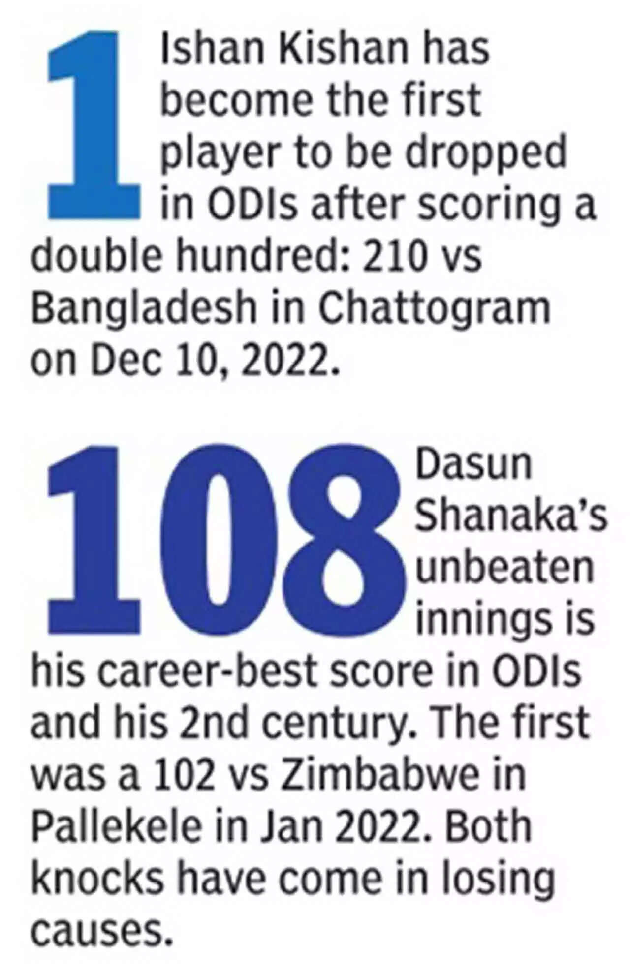 Asked to bat first o n a placid track by Shanaka, Rohit Sharma led from the front with a 143-run opening stand with Shubman Gill, who was preferred over last match's record-breaking double centurion Ishan Kishan. The Sri Lankan bowling was pedestrian and their poor catching andoutfield fielding didn't help.