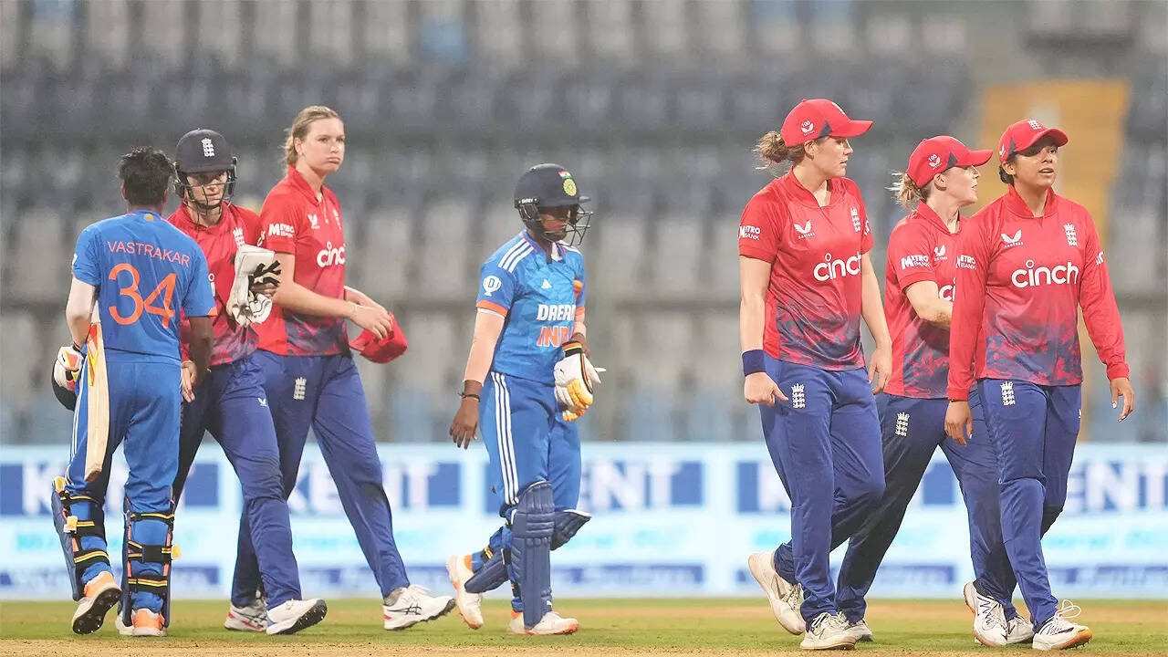 MUMBAI: India were provided a rude reality check by a superior England, which downed them by 38 runs to take a 1-0 lead in the three-match women's T20I series at the Wankhede Stadium on Wednesday night.