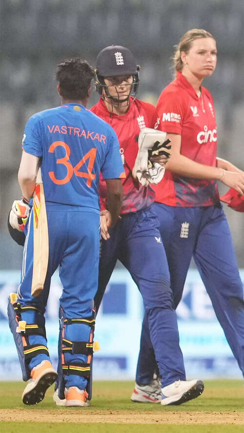 As if picking up a cue from that, Patil, who too had struggled till then, took out England skipper Heather Knight's off-stump with a straight delivery, the batter playing down the wrong line. India continued to take wickets as 'keeper Richa Ghosh pouched a superb diving catch to send back Sciver-Brunt off Thakur, but England kept punching back.