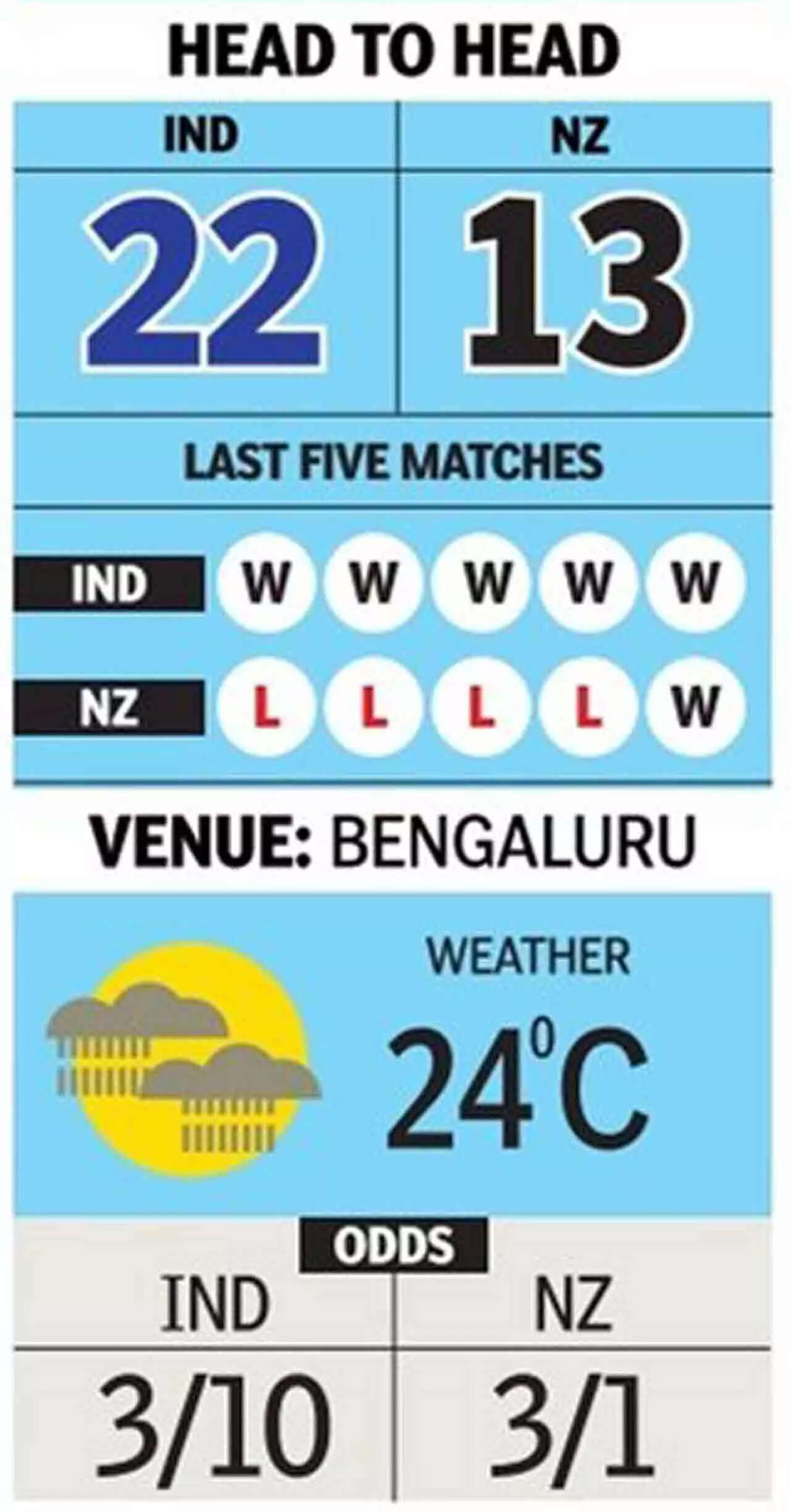 Against the red-hot home side, the Black Caps will have their task cut out. Coming off a two-match thrashing in Sri Lanka, among the few positives they will take from the loss to the Islanders is acclimatisation to sub-continental conditions, especially since their one-off Test against Afghanistan was abandoned in Noida last month.