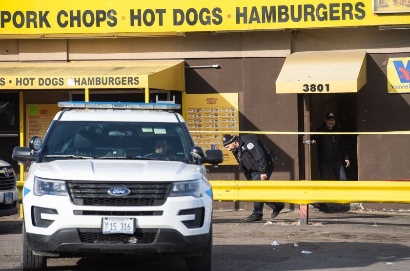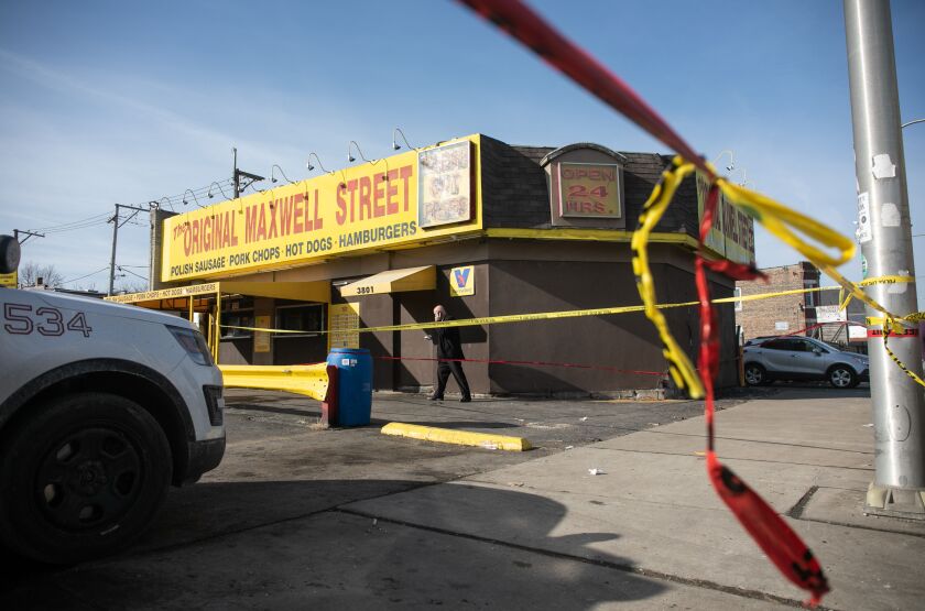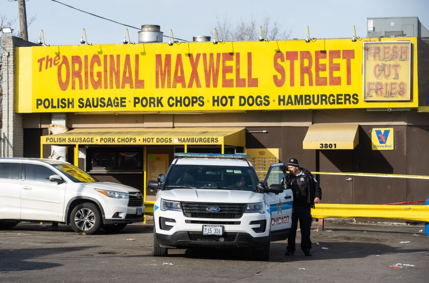 The shooting happened around 3:30 a.m. at the Original Maxwell Street hot dog stand in the 3800 block of West Harrison Street as the gunman and one of the officers waited in line, Brown said.