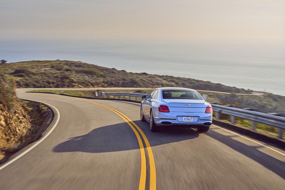 From behind the wheel, the Flying Spur feels as if it is effortlessly gliding. There are no synthetic sounds playing within the cabin, so the experience is completely silent. The electric motor provides ample propulsion, despite the Bentley’s 5,600-lb curb weight, so the sedan cruises easily with the other vehicles around it.