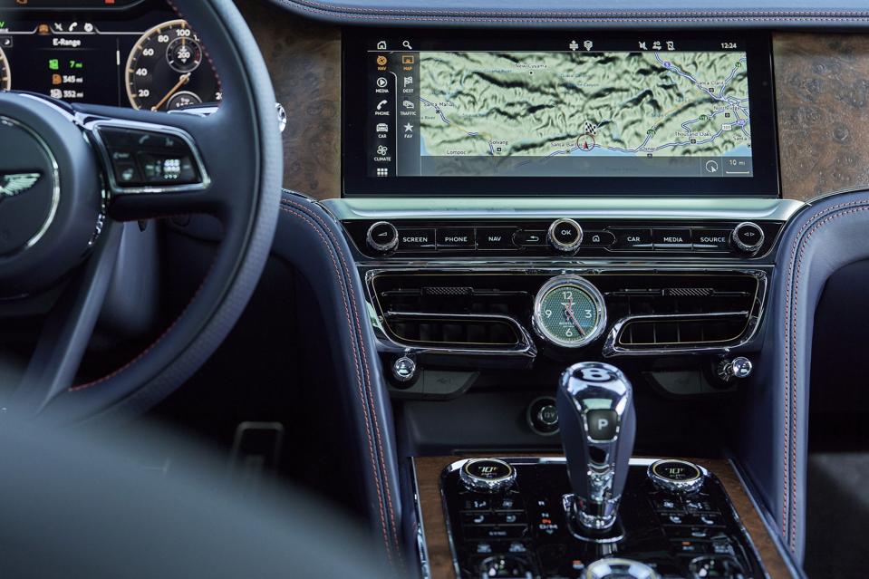 Left simply in drive, and assuming there is juice in the battery, the Flying Spur will pull away with only its electric motor for propulsion. Ignore its 134 hp rating, as the electric motor develops 295 lb-ft of instant torque – that’s strong enough for swift acceleration around town and through traffic (of course, the twin-turbocharged V6 is always standing ready to provide additional assistance if the driver’s foot calls for it).