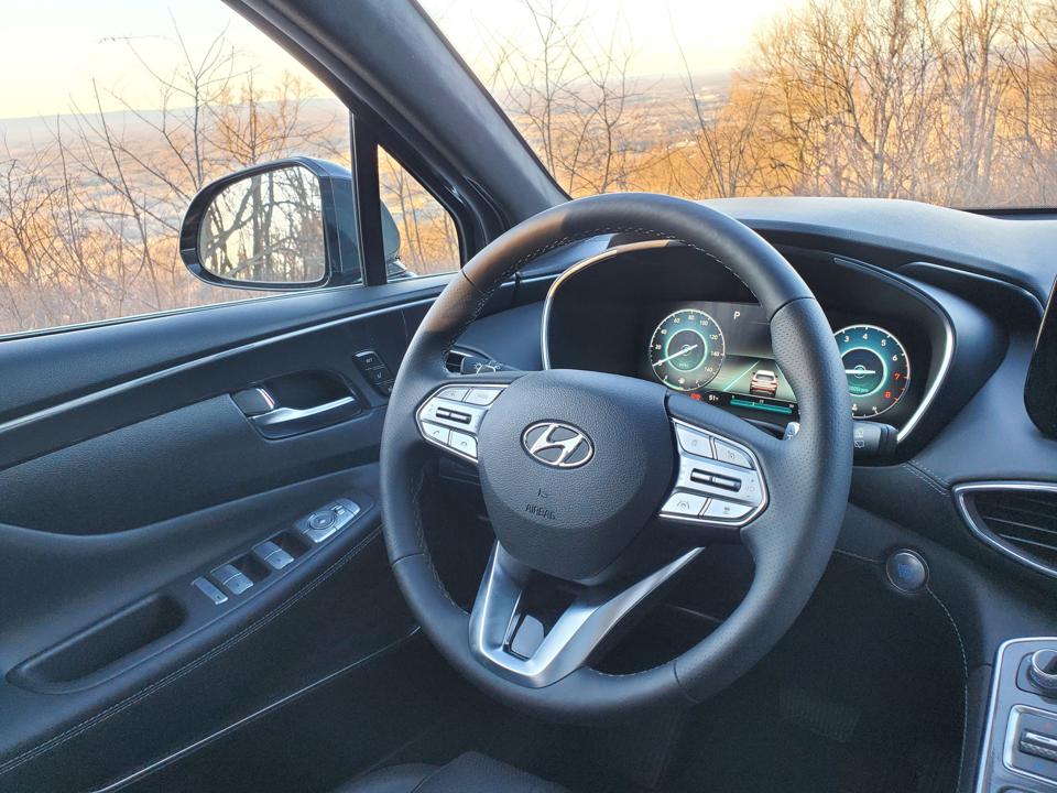 The Santa Fe has an attractive cabin that offers a variety of contemporary options including a digital gauge cluster, heads-up display plus heated and ventilated seats. The SEL comes standard with an 8 inch infotainment screen and wireless Apple CarPlay and Android Auto. But also available are two optional packages offered, the convenience and premium packages. The premium package is a $4060 option that adds leather upholstery, a 10.25 inch touch screen that requires wired Apple CarPlay and Android Auto, driving assist, and a panoramic roof.