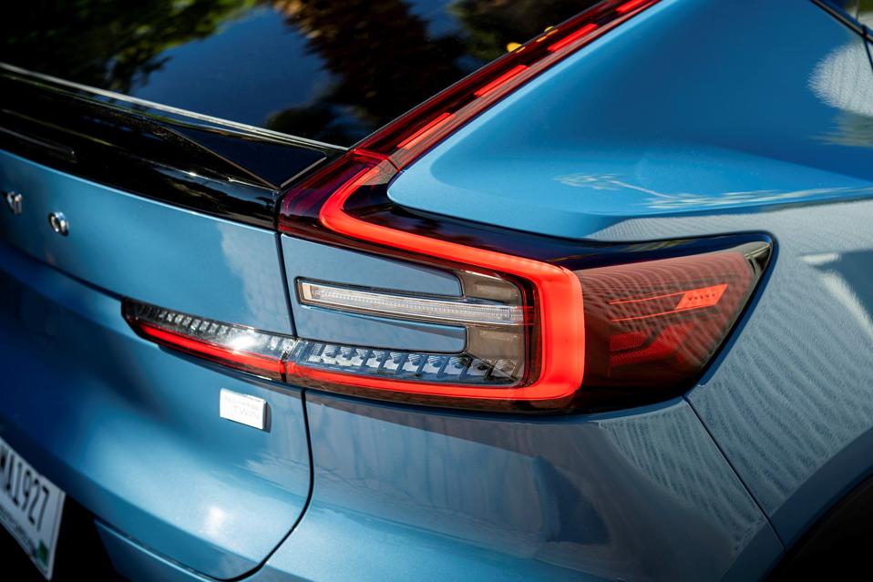 That intent is clearly reflected in the C40’s shape, which offers a lower roof and a far more aggressive roof slope leading to a smaller rear window. That’s great for aerodynamics, but does compromise rear visibility. The C40’s unique exterior elements continue with standard 20-inch wheels, black roof pillars leading to a fixed-glass roof panel, a solid grille featuring a large “Volvo” badge, and thin LED taillights that snake up and around the hatch and roof pillar.