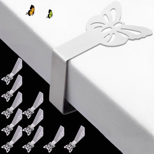 Use these clips to prevent tablecloths from shifting, bunching, or sliding off of tables. Plus, they feature a butterfly design that adds a decorative touch to your event. By the way, they can also be used to store items like purses, keys, umbrellas, and more so they stay off of the floor. They’re crafted from durable stainless steel and can be adjusted to fit on various tables.