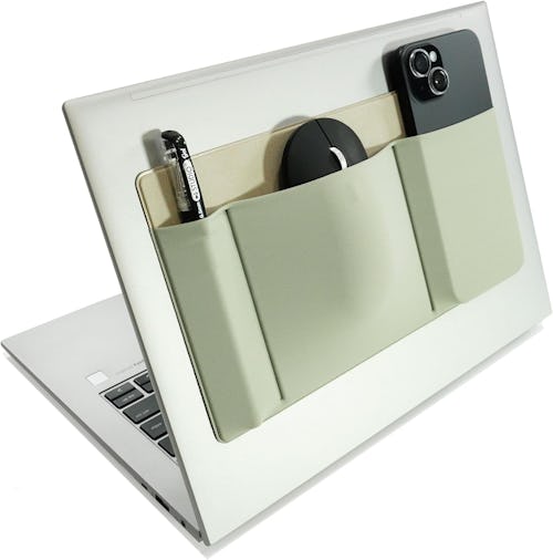 A 3-pocket organizer that sticks onto your laptop