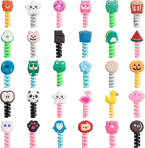 These stretchy and soft cable protectors are easy to install on cords. They come in a pack of 32 in a variety or styles. They’re fun but also practical because they can make it easier to distinguish cords and provide protection from wear and tear, preventing them from getting damaged.