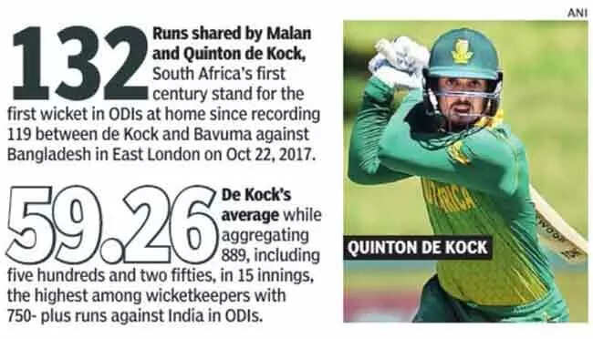 After de Kock, who punished the Indian bowlers at will, was out lbw while trying to flick a full toss from Shardul Thakur, Malan added 80 off 76 balls for the second wicket with the in-form Proteas skipper Temba Bavuma (35, 36b, 3x4) to keep up the momentum.