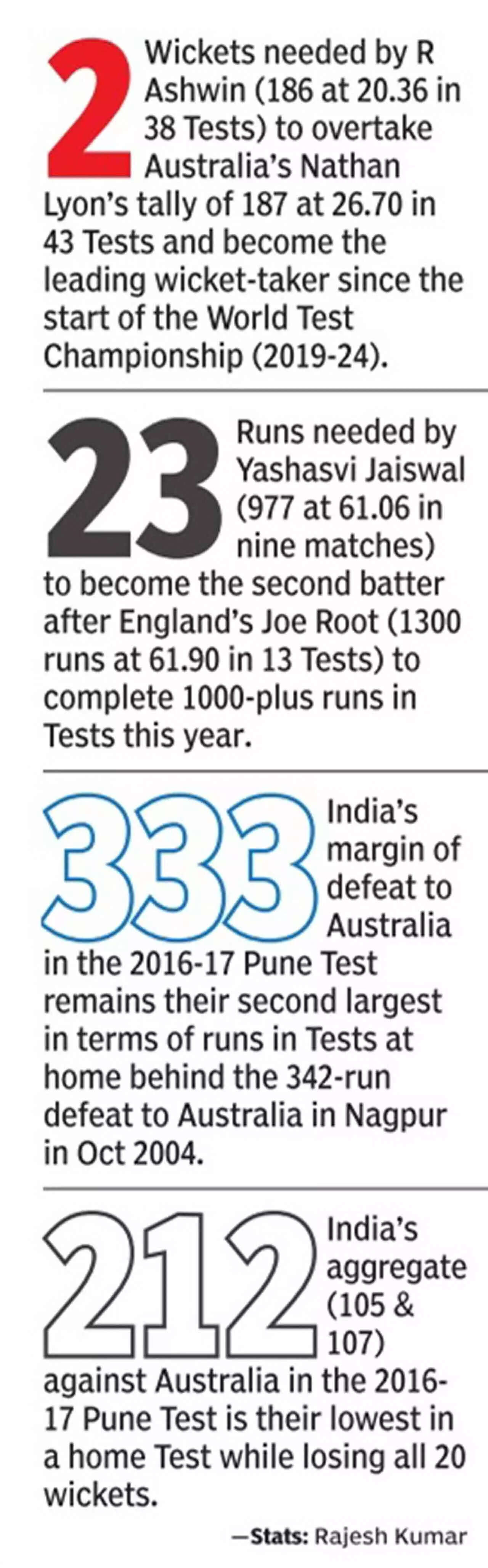 Besides Ajaz Patel's 10 wickets in an innings in Mumbai in 2021, there are examples of Aussies Steve O'Keefe (12-70, Pune 2017), Matthew Kuhnemann (6-76, Indore 2023) and England's Tom Hartley (7-62, Hyderabad, January 2024) troubling India big time with their left-arm spin.