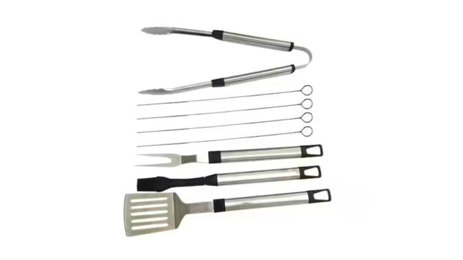 Level up your grillmaster skills with the bestselling Nexgrill tool set. Each set comes with sturdy and dependable stainless steel tools, including a slotted spatula, fork, tongs, four skewers and a basting brush for year-round grilling and BBQing.