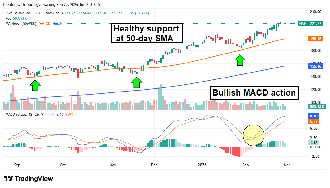 Five Below reported its fiscal Q3 2026 results in December, and while the numbers were exceptional, management warned of a potential 240-basis-point decline in operating margin due to tariff costs. The company will release its fiscal Q4 results on March 18, and while the tariff relief is unlikely to factor into those numbers, projections for fiscal 2027 will be improved compared to last quarter. Analysts at JPMorgan certainly think so, which is why they boosted their price target to a Street-high $259 (representing upside of nearly 15% from current levels).