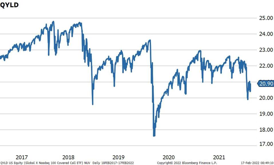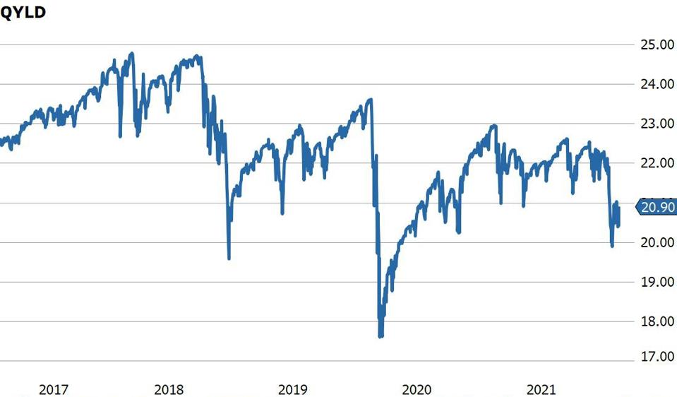 Taxation of covered call strategies can be complicated. They tend to work best in tax-exempt accounts like IRAs given the majority of the distribution from the fund is treated as ordinary for tax purposes. The primary risk to the strategy is continued downward pressure on the Nasdaq.