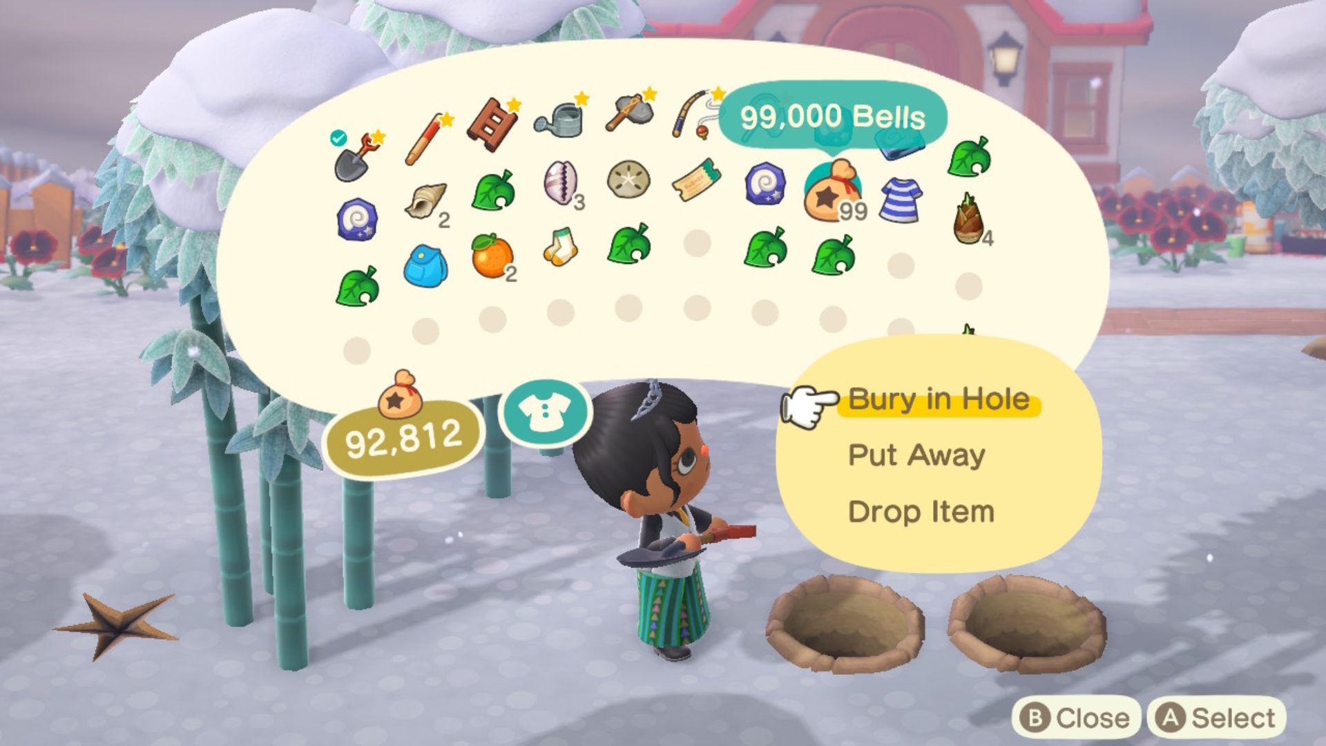 Every day in Animal Crossing: New Horizons, you'll have the opportunity to dig up glowing spots that will give you free bells. But, what you might not know is that you can replant bells in the exact same spot afterwards to grow Money Trees. You can replant up to 10,000 bells to reap the best rewards in return.