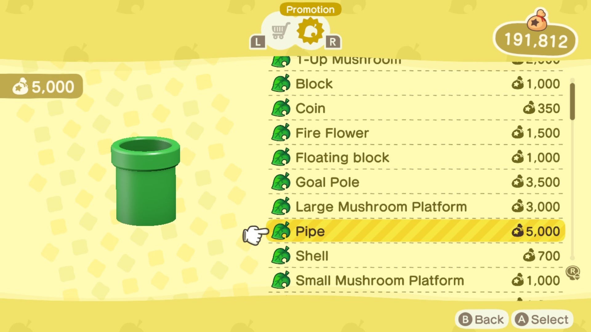 Whilst you're shopping at the Nook Stop, it's worth buying a couple of Mario pipes from the Special Goods section of the Nook Shopping app. Why? Well, you can place them in different parts of your island for fast travel. I personally have one in my home, so I can always return home from the other one when I need to, but it's totally up to you how you use them. They'll cost you 5,000 Nook Miles each though, so save up.