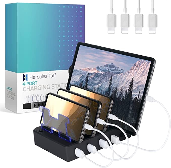 The USB charging bricks in my home are constantly on the move, and no one ever puts them back where they found them. Thankfully, this charging station can be placed in a convenient spot for everyone to access, and even comes with four shortened lightning cables. Plus, the quick-charge USB ports help power up your devices fast.
