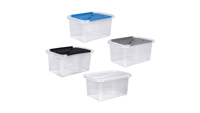 “The clear plastic storage bins are great because you can see everything and they stack well in pantries, under sinks or kids’ rooms,” explained Economou. “They work in just about any area of the home.”