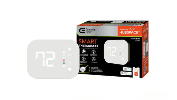 To set up the Commercial Wi-Fi and Bluetooth Smart Programmable Thermostat, it usually takes 30 minutes or less with the Hubspace app. Once it’s running, you can create multiple custom schedules for each day of the week and presets to manage your home’s climate whether you’re home or away. The Commercial Electric Smart Thermostat from Home Depot is compatible with 95% of U.S. HVAC systems and works with Google and Alexa, so adjusting the temperature is as simple as using a voice command. Save 10% with the lower price.