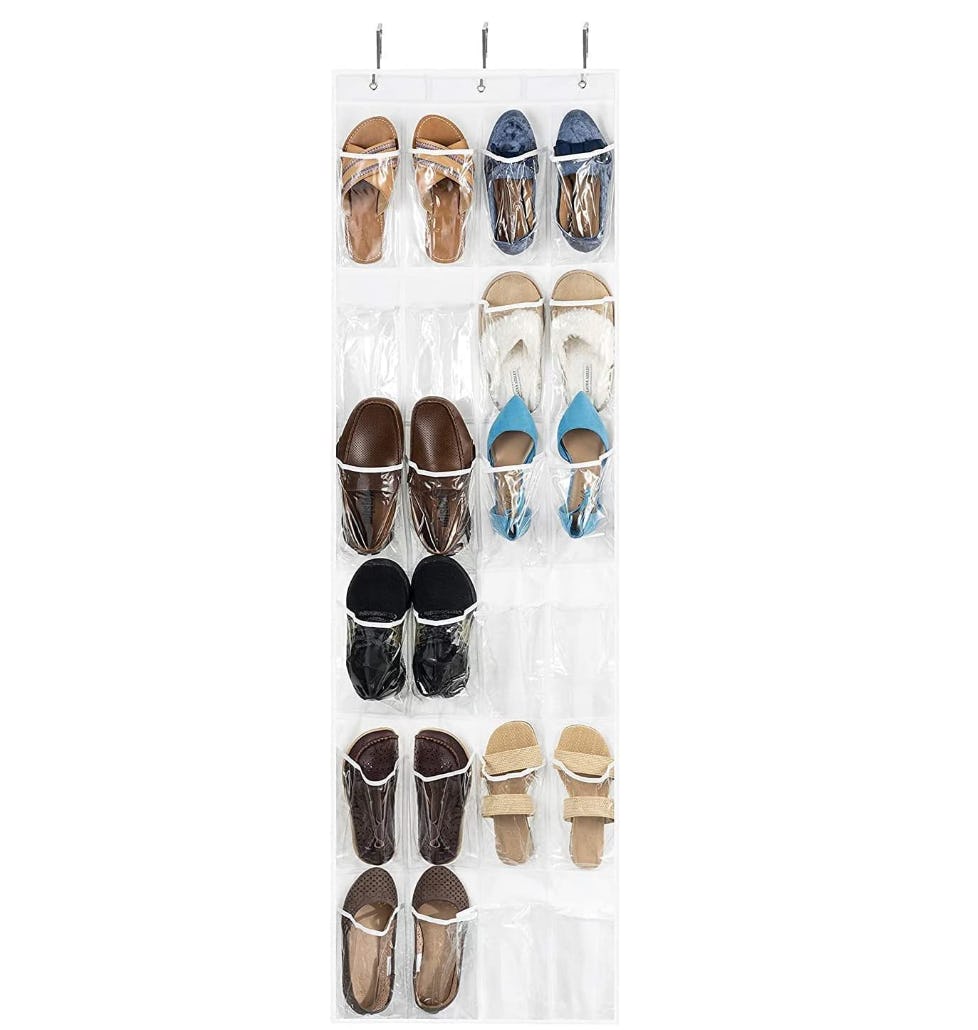 With space for up to 24 pairs of shoes, this organizer is a total game-changer when it comes to maximizing your closet space. The pockets are transparent, making it easy to see where each shoe is without having to unpack anything — and the stainless steel hooks on the top are wide enough to fit over any standard-sized door.