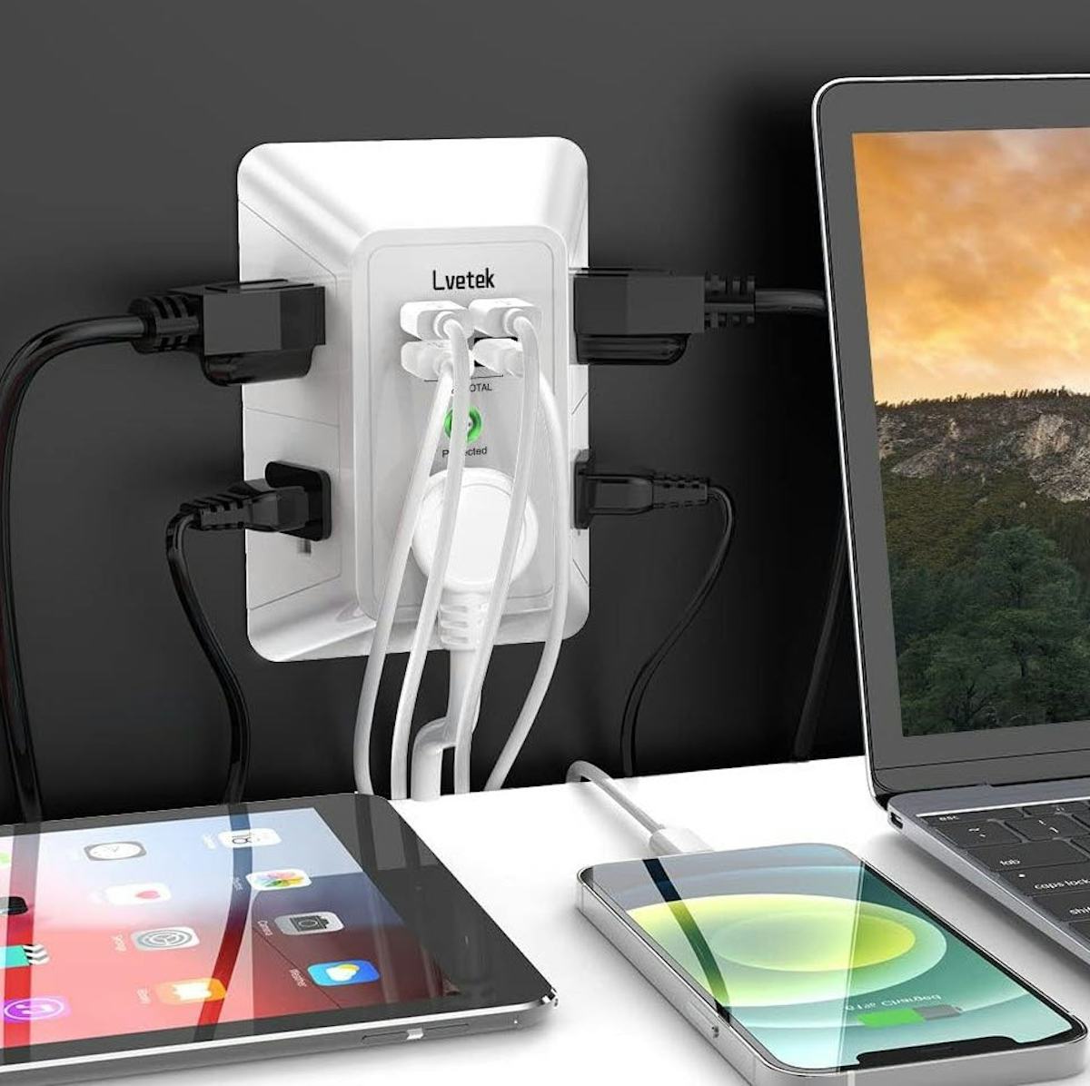 Another less labor-intensive way to implement Borcherding’s advice is with an outlet extender that plugs into your existing standard outlet. It secures with a single screw in the center and requires no electrical work. It turns one outlet into five standard plugs, three USB ports, and one USB-C plug. It comes in black and white.