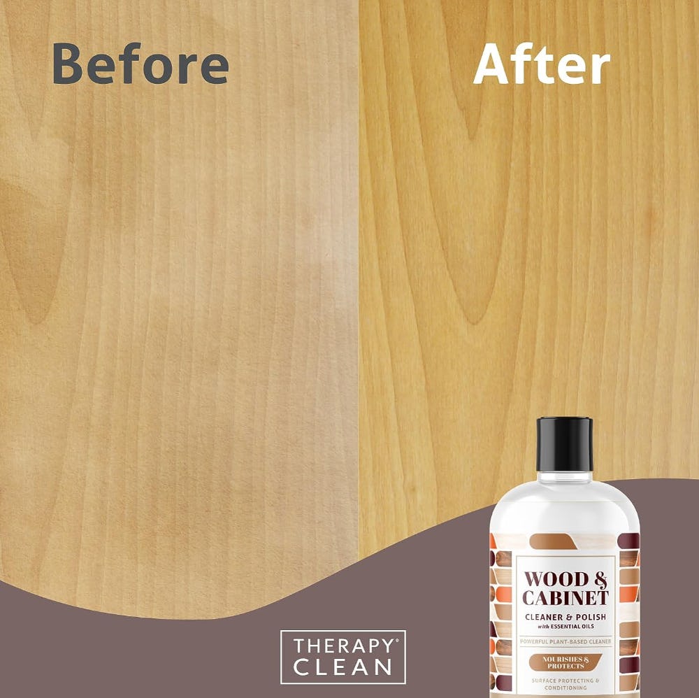 To give a little shine or TLC to old or unpainted wood counters, cabinets, and floors, this cabinet and table restorer may be all you need. Wipe it over dry, faded, scuffed, and tired wood and watch as that same wood starts to shine. It cleans stains and dirt and feeds the wood with a deep drink of mineral oil. And it smells like almonds!
