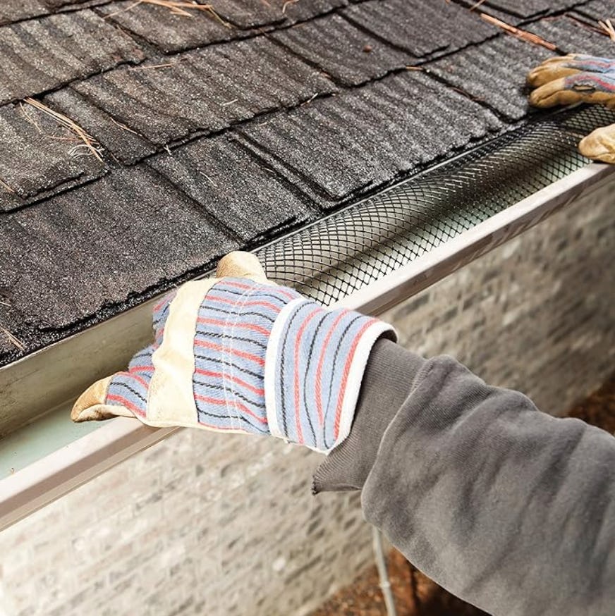 Josh Riutta, owner of Mikku and Sons Roofing, says that, when it comes to your roof, “Regular maintenance is crucial.” Start by addressing the gutters. Install this gutter guard to keep leaves, pine cones, squirrels, and other acts of nature from clogging them up. “A clogged gutter can lead to water damage requiring roof repairs,” he says. “Addressing minor issues promptly prevents them from snowballing into expensive problems.”
