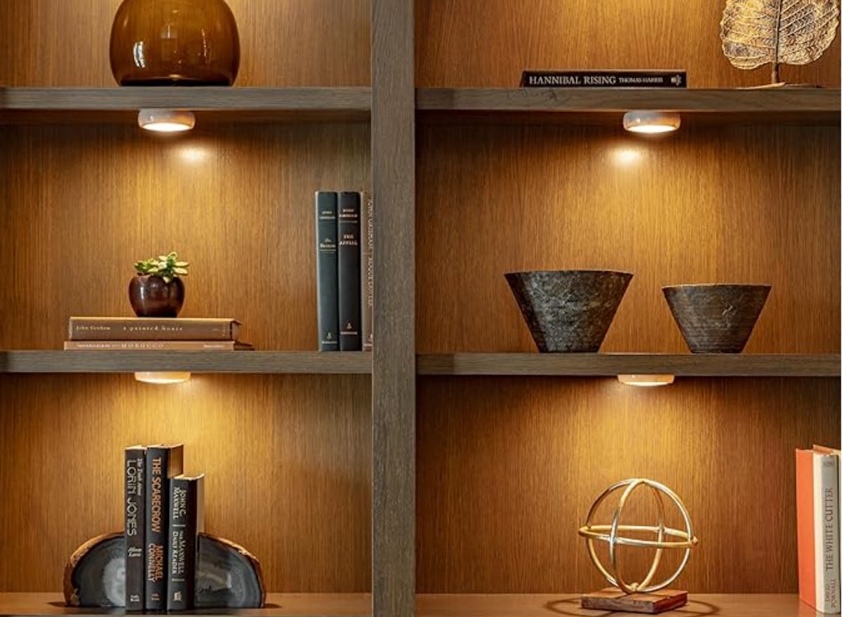 This six-pack of LED lights makes it so easy to create pools of light precisely where you need them. They peel and stick to any surface, turn on with a tap, can be controlled all at once with a remote, and allow you to set a duration for them to stay on and then turn off automatically. They come with batteries, adhesive mounts, and screws.