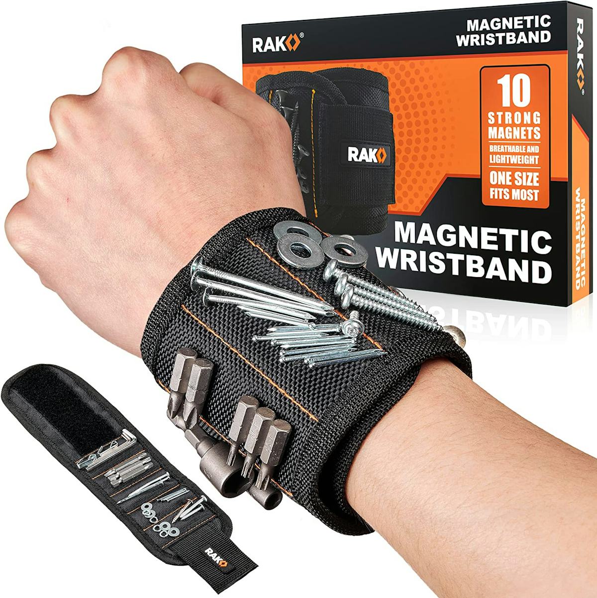 Strap on this magnetic wristband for a convenient place to store metal hardware like drill bits, screws, and nails. The adjustable band can accommodate most wrist sizes, but you can also hang it from your belt or near your work station. The nylon band is designed to be durable and tear-resistant to withstand frequent use.