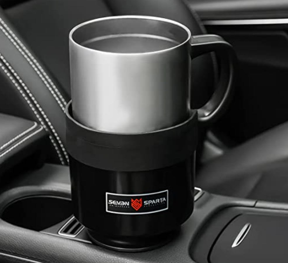 If your favorite water bottle doesn’t fit in your car’s cup holder and you’ve just been dealing with it, check out this expander. The base slides snugly inside the existing cup holder and gives you a way bigger space to fit most 40-ounce water bottles so they’re easily grabbable and not rolling around the car.