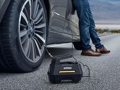 A portable air compressor that fits in the trunk of your car