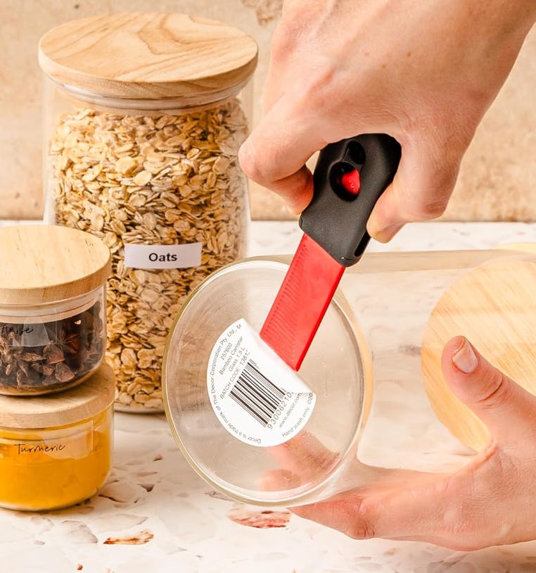 I hate when I can’t get a label or barcode off of something I’ve just bought. And then I discovered these specially-designed scrapers that do the trick. They work like a charm to remove stickers, labels, barcodes, and other grime without scratching your surfaces. And the inside of the handle, there is a built-in sharpener to keep your blade ready to work even after multiple uses.