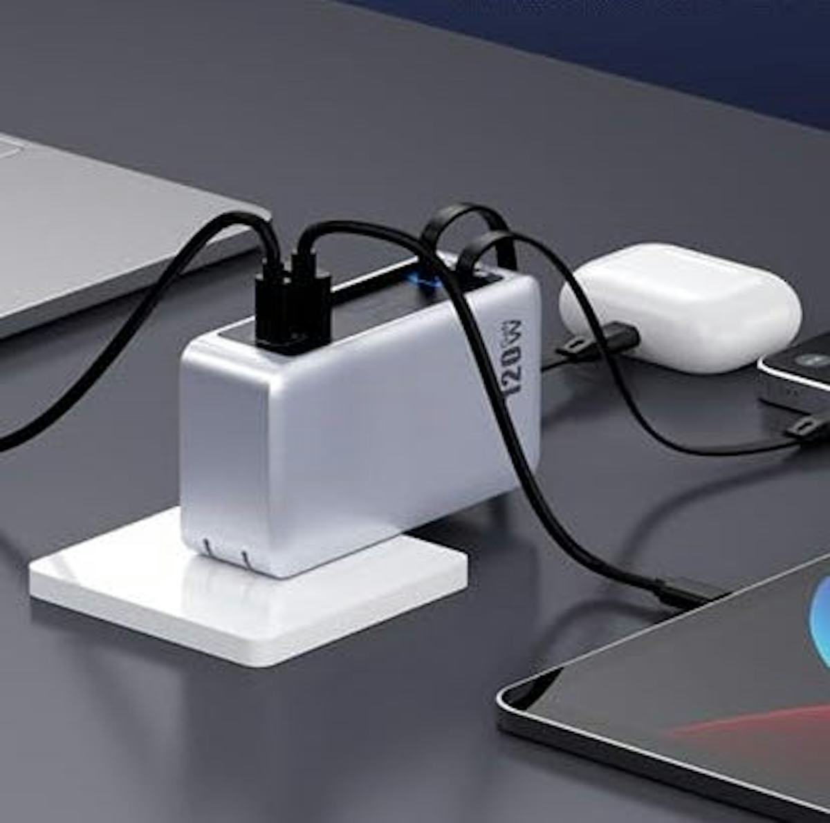 This charging block lets you power up to four devices at once, while also minimizing cord clutter. The charger features retractable USB-C and lightning cables as well as USB-A and USB-C ports for plugging in your own cords. And the power plug is foldable for compact storage. If you need more charging space, you can upgrade to the six-port or eight-port options.