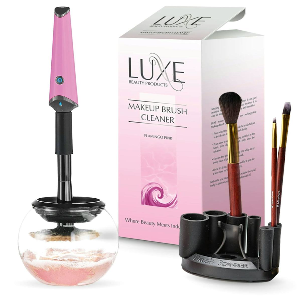 This makeup brush cleaner helps keep your supplies looking like new. The motorized handle attaches to your brush and spins it inside the cleaning bowl to agitate the bristles, removing dirt and residue. There are eight attachments in the set to fit a variety of brush sizes.