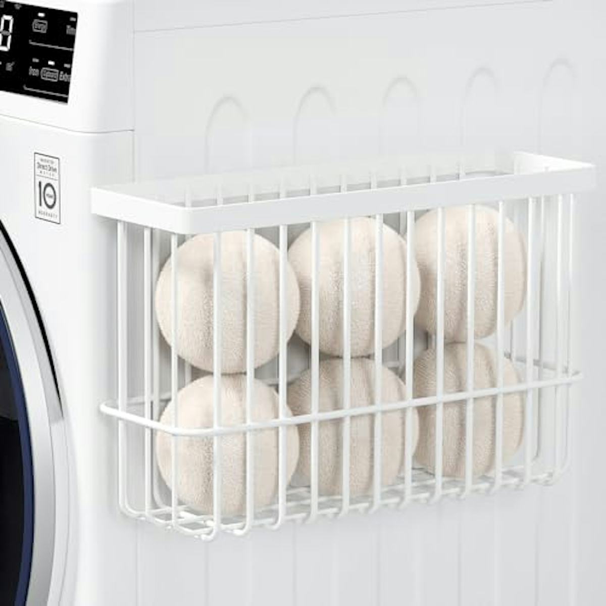 This iron basket magnetically attaches to the side or front of your dryer to give you the perfect spot to hold reusable dryer balls and other laundry room accessories. It’s large enough to hold six balls, and if using it magnetically doesn’t work it can stand on a table or countertop. If you don’t use dryer balls, you can also put a garbage bag inside and use it to collect lint.