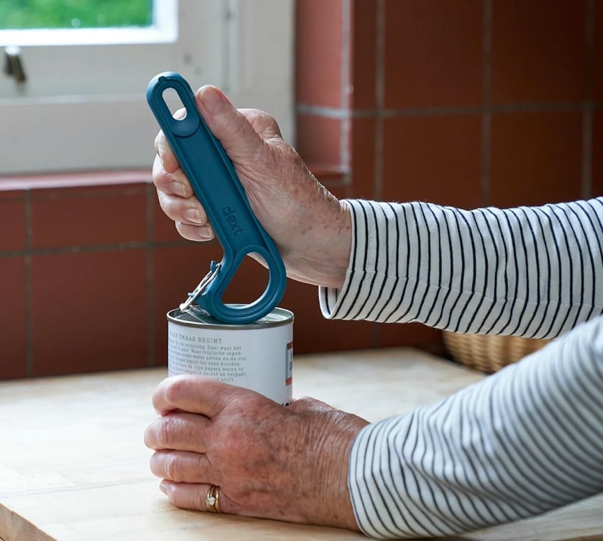 This can opener has a long ergonomic handle and an easy-to-maneuver fork that goes underneath a can’s pop top to release it and open the can. Whether you want to preserve your new manicure or you have some weakness in your hand, this can opener tool is a great thing to have to make meal prep just a little bit easier.
