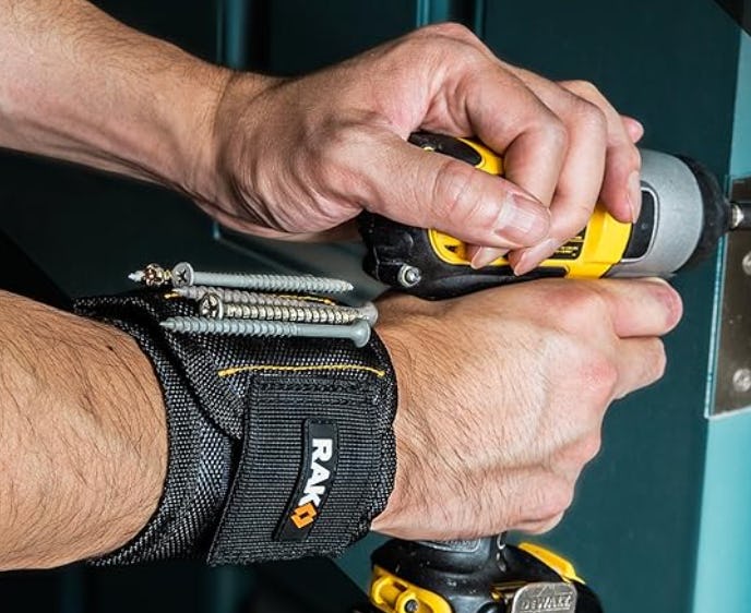 A magnetic wristband that holds nuts & bolts like an extra hand
